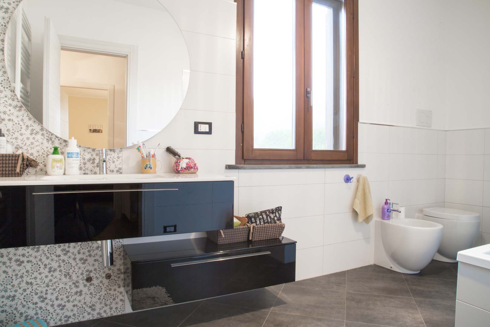 Per questo siamo intervenuti costruendo ex novo i due bagni quello al piano terra e al piano primo, realizzando nuovi allacci per la cucina, sostituendo la pavimentazione esistente con del parquet, ampliando l’impianto elettrico, in più sistemando gli spazi esterni con la realizzazione di un cancello fronte strada e un camminamento nel giardini sul retro.