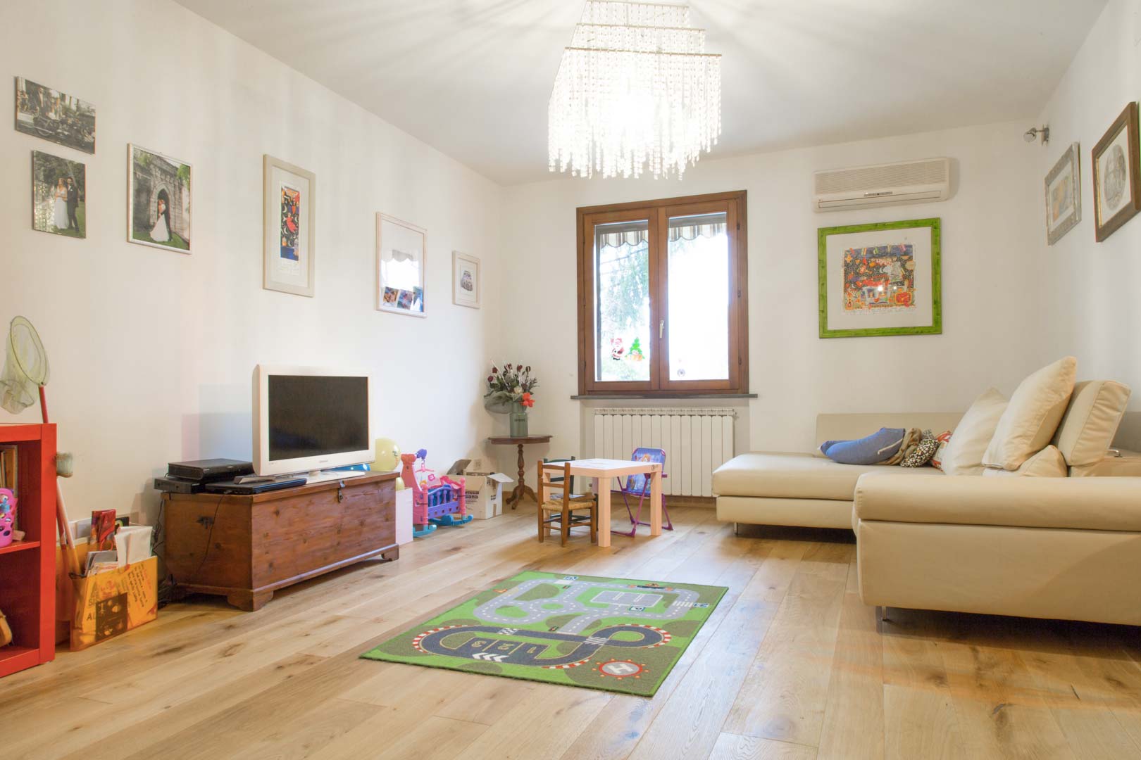 L’immobile non di recente costruzione costituito al piano terra da ingresso, soggiorno, cucina, bagno, ripostiglio sotto scala e garage, mentre il piano primo al quale si accede tramite scala dal soggiorno, da disimpegno, camera matrimoniale con balcone, camera singola, ripostiglio, locale multiuso e bagno necessitava di una ristrutturazione interna generale.